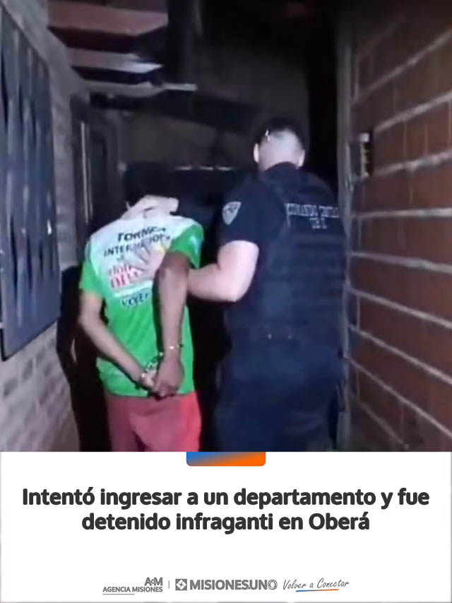 AGENCIA MISIONES.UNO | Un joven fue sorprendido por la Policía mientras forzaba la reja de acceso a un departamento en Oberá. Fue detenido en el lugar y quedó a disposición de la Justicia.